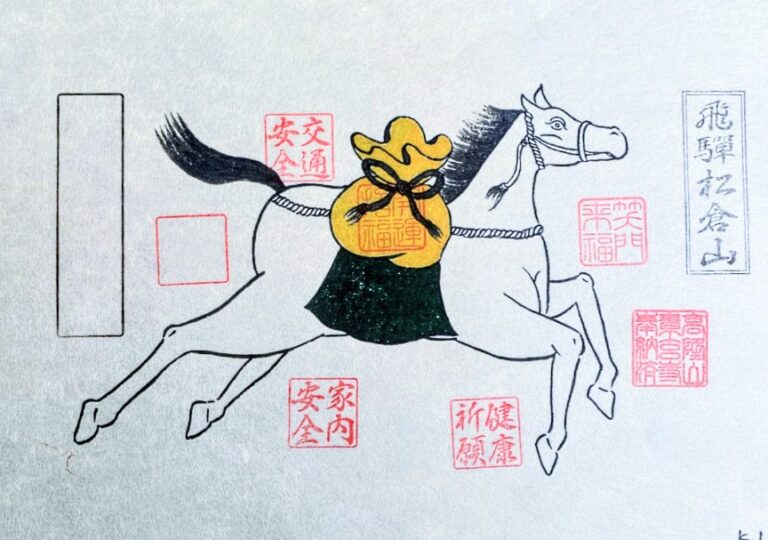 The origin of ema lies in the ancient belief that deities would appear riding horses. In the past, real horses were offered to the gods, but over time, this practice evolved into offering wooden or paper plaques depicting horses. In the Hida region, paper ema are especially popular. These often feature horses adorned with treasure bags and other auspicious symbols. It is believed that placing them at the entrance of a home invites good fortune and blessings.